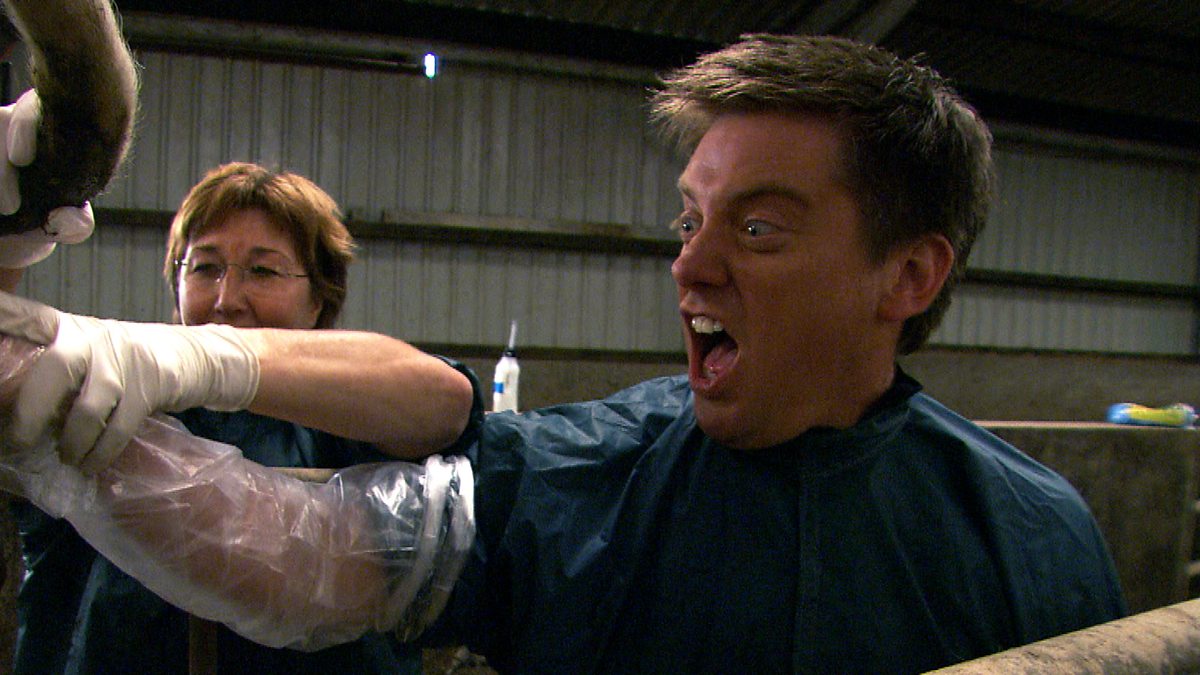 Claire and Matthew become vet assistants for the day in Dunfermline, as a horse needs help, and Holly the dog has surgery. Ewan and Ethan eye up an owl with a sore head in Norfolk. And Dom is in at the deep end when he's asked to clean a giant shark tank.