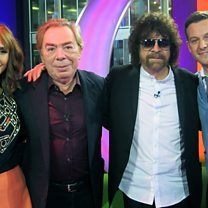 Matt Baker and Alex Jones are joined by Andrew Lloyd Webber and the Electric Light Orchestra's Jeff Lynne. Plus, how Angela Rippon was targeted by email scammers, the scandal of Churchill's portrait, and the secret life of Kenny Everett.