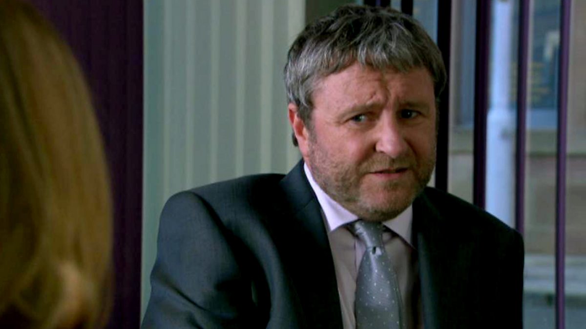At the mediator's office, Eileen isn't convinced. She tells Raymond the whole thing is a sham, and threatens to expose the real reason she doesn't want Stuart around him - he's a murderer. At loggerheads, the pair fail to find common ground, and an argument ensues, forcing Raymond to leave. Things only become more difficult when Raymond returns home to find a letter detailing the complaint made about The Tall Ship. He decides there's only one person responsible, their friendly local councillor, and heads off for a confrontation with Eileen. On the way, Miriam lets slip about Stuart's accident, giving Raymond all the ammunition he needs. The next day, Eileen receives a shock visit from a social worker following up reports of child abuse. Eileen is livid, and her relationship with Raymond sinks to a new low. Angry and exhausted, Eileen can't keep her secret anymore, and finally lets slip to Gina about Raymond's murdering ways, but is shocked to find Gina more forgiving than she can be. With that rejection hanging over her, Eileen decides to take a chance, and makes a deal with Mark that seems too good to be true.