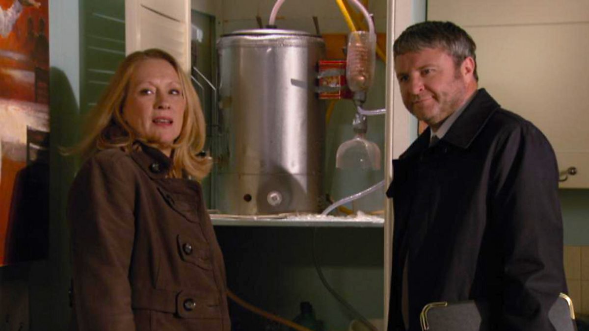 Despite Eileen's guilt over the bribe, she is confident that Mark Vincent being the new landlord for the O'Haras and Mullens is the right way to go. Not even a letter from Raymond's solicitors disclosing that he has applied for full residency for Stuart blunts her optimism. She simply tells Raymond it would never work and then joins Mark Vincent to convince the somewhat cynical residents that he will modernise their flats. To Eileen and Mark's delight, Molly, Scarlett and Jimmy are won over and thrust their lists for refurbishment at the twosome when they come to check out the flats. However, Scarlett's moonshine explodes, seeping into the floor. All are astounded when Mark Vincent announces this gives him cause to evict them. Eileen pleads with him to reconsider, but Mark is intransigent, revealing to a horrified Eileen that clearing the flats for more desirable tenants who can pay higher market prices was his plan all along. Eileen wants nothing to do with this, but he reminds her fifteen thousand pounds says otherwise. Betrayed, Eileen feels helpless, but Kelly-Marie girds her into action. Eileen challenges Mark that what he's doing is illegal, but he is unfazed. Eileen faces the evictees with the bad news, but promises them she'll find them temporary accommodation. This doesn't prove easy. Her problems are compounded when Raymond, appalled by Eileen's association with Vincent, decides he is going ahead with the writ. In response, Eileen fronts up to Donald, ready to dob in Raymond over Kennedy's murder. But she thinks better of it. Having found out about her visit, Raymond's attack on Eileen is searing, making her feel even worse.