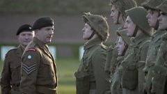 Corporal Barrowman drills Two Section on the parade ground. He is aghast that McIllvenny has permission to wear 'soft shoes' and that Private Hoy is unable to co-ordinate his arms and legs.