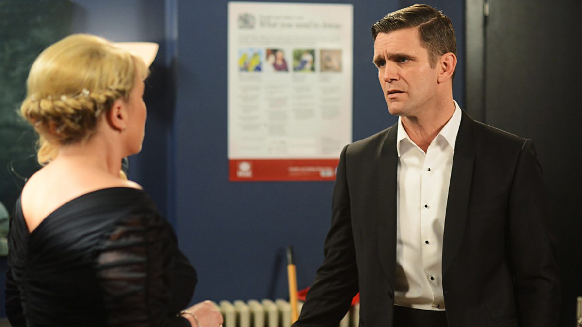 A stunned Sharon takes Jack into the office. He admits Ronnie’s being released; it’s made him realise what he and Sharon have isn’t enough. Sharon wonders if it matters if they’re both settling but Jack’s adamant. Insisting Jack stays, Sharon tells everyone it’s a mutual decision but the weddings off. Everyone’s awkward when she insists on having the party anyway. Claiming she’s fine, Sharon rejects Tanya’s sympathy. Sharon throws her bouquet, Ian gulps when Denise catches it. Phil mopes in the Vic; Lola tells him what’s happened. Sharon drags Dennis away from Jack when he leaves with Amy. Dennis runs away from Sharon. Plastering on a smile, Sharon heads for the bar. Phil lurks outside R&R but leaves after Jack reveals it wasn’t Sharon who stopped the wedding. Eventually the club empties and Sharon’s left alone. She heads for Phil’s, knocks on the door and asks if she can come in.