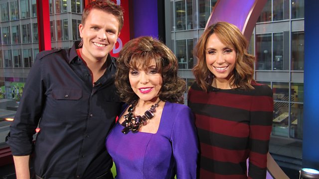 Alex Jones and Jake Humphrey are joined by screen legend Joan Collins, and broadcaster Andy Kershaw gives a personal insight into North Korea.