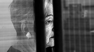 1/3A young girl picks up her father's binoculars and observes the neighbours across the road.