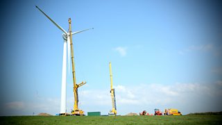 3/3The team struggles with the wind while installing a turbine in Cornwall.