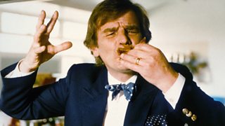 Keith Floyd cooks fish soup during a trawler race in Plymouth, plus other seafood dishes.