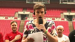 Greg James....in a dress...singing....live from Wembley Stadium.