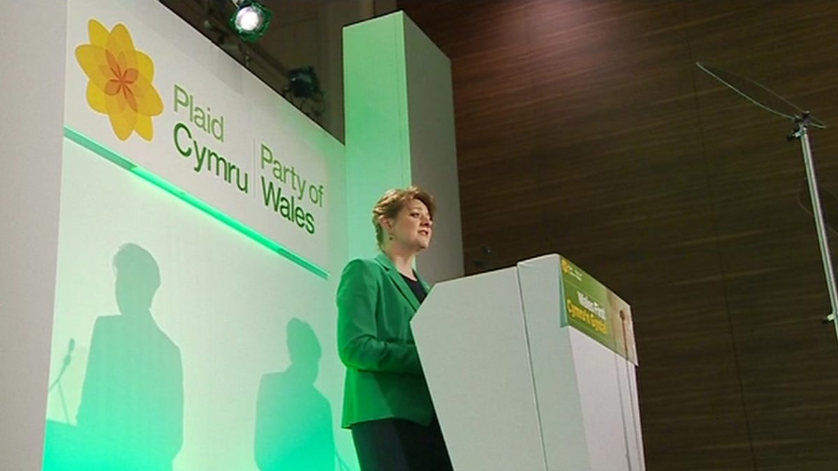 Recorded coverage of Plaid Cymru leader Leanne Wood making a speech to her party's spring conference in the Holland House Hotel, Cardiff, from Friday 7 March.
