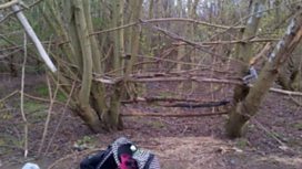 A mother is furious that her child was told off for building a den in a wood.