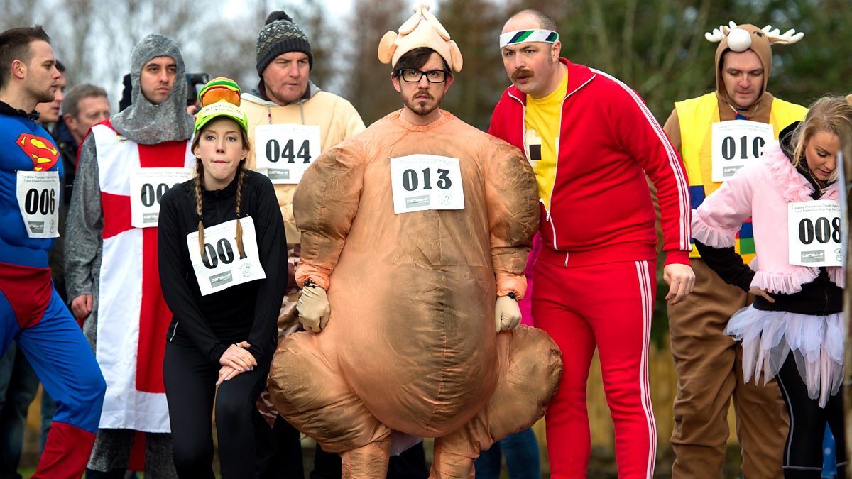 It's that time again. It's 'Carabine Promotions Annual Charity Fundraiser Fun Run Run for Charity.' It's a big event (and an even bigger sign) as the whole of Carabine's staff take to the country park wearing lycra to raise money for homeless people.