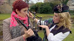 Connie meets bagpiper Louise and tries her hand at playing the bagpipes. Louise tells of playing the bagpipes for Pope Benedict on his visit to the UK.