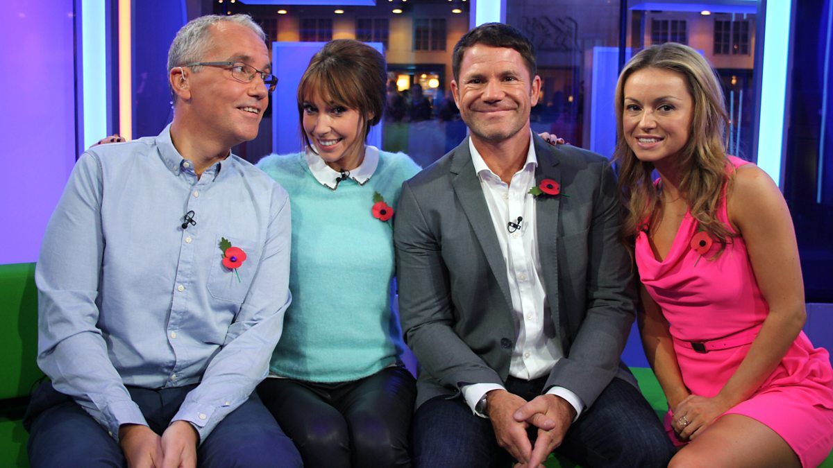Alex Jones and guest presenter Eddie Mair welcome Strictly stars Steve Backshall and Ola Jordan onto the sofa.
