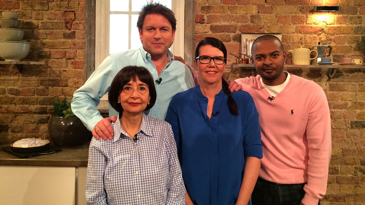 James Martin presents the weekly live cooking show with guest chefs Madhur Jaffrey and Trine Hahnemann. Actor and film director Noel Clarke faces his food heaven or food hell.