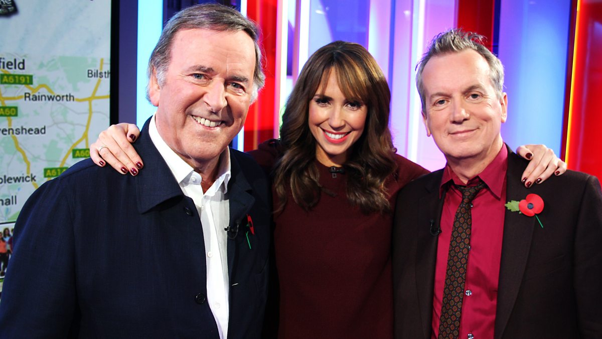 Alex Jones and guest host Sir Terry Wogan are joined in the studio by comedian Frank Skinner. Matt Baker is live in Nottingham with the Children in Need rickshaw riders.