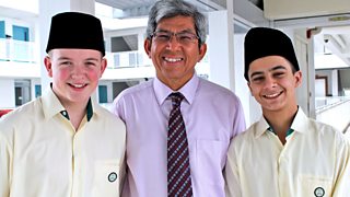 3/5Two 13-year-old boys from Glasgow spend a week at a strict Muslim school in Singapore.