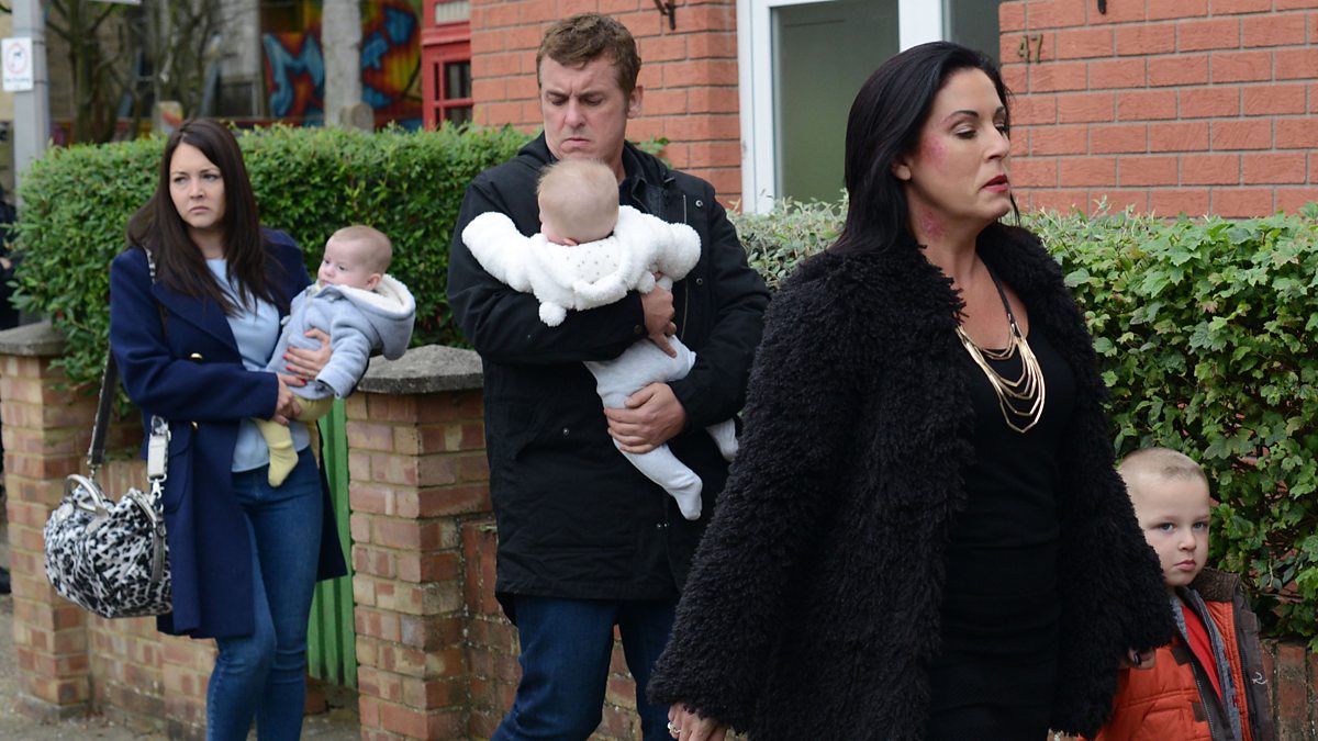 The police bang on the door and Kat shouts at them out of the window. Mick finds Stacey in the Vic and tells her that Kat is in trouble. When Stacey heads over, Kat shouts at her and tells her to stay out of it. Stacey tries to make her see sense; she is on a suspended sentence and if the police come, she will end up in prison. A crowd starts to build outside and just as the police prepare to knock down the door, Kat and Alfie step outside. Mick offers them the Vic living room for the night. Alfie carries the last of their bags upstairs and gazes at the photo of Nana Moon. Kat points out that a year ago this pub was their home and breaks down. Alfie holds her.