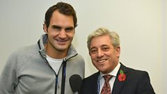 Speaker of the House of Commons John Bercow talks tennis with Roger Federer