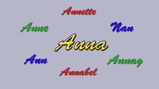 An t-ainm Anna, Anne, Annetta, Annabella, Nan; 's iomadh cruth a th' air an t-ainm Anna.