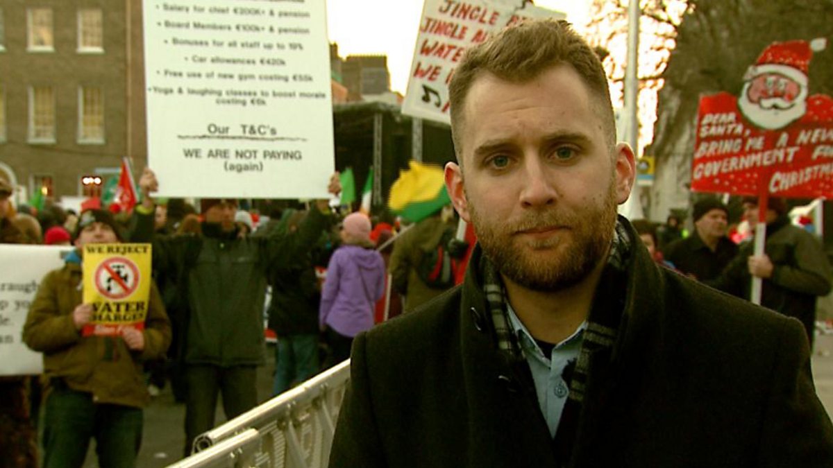 Calum Maclean is in Ireland, where mandatory water charges have caused uproar. Ireland’s water system is in dire need of upgrade, and the charges have been introduced to help pay for the work. Some parts of the country have unsuitable drinking supplies and are on boil water notices. The charges are a legacy of the Troika agreement Ireland signed up to when the banks failed following the financial crisis. Thousands have very visibly protested the charges, and the unpopular policy could yet have political ramifications in Ireland.