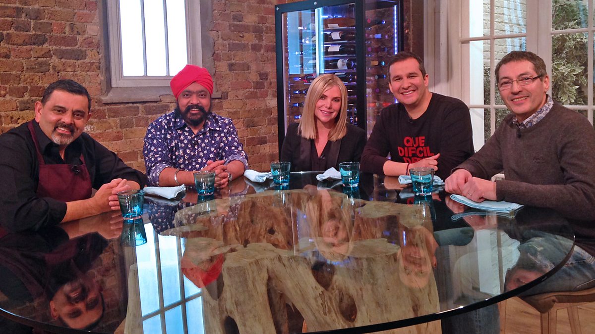 Cyrus Todiwala and Tony Singh present the weekly live cooking show with help from chef Daniel Galmiche. Wine expert Susie Barrie chooses wine to match the dishes in the studio.