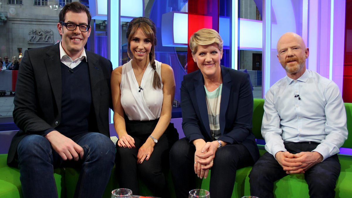 Alex Jones is joined by co-host Richard Osman. They chat to Clare Balding about Saturday's Boat Race, which for the first time in history will see the female crews racing on the same route as the men. Clare has made a film about women's achievements in sport. Carrie Grant is live from Ladies Day at Aintree, where she speaks to top women jockeys Katie Walsh and Nina Carberry. Joe Crowley looks at how a group of entrepreneurs has come up with a healthier version of the fried chicken shop, while street barber Michael Douglas takes his scissors along to Downing Street. Jimmy Somerville chats about his new disco album and performs his 1984 classic Smalltown Boy live.