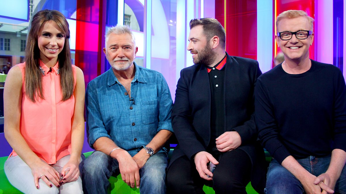 Alex and Chris play giant human snooker on The One Show piazza. Steve Davis and Dennis Taylor are in Sheffield on the eve of the World Snooker championships and former Westlifer, Markus Feehily, performs his new single.