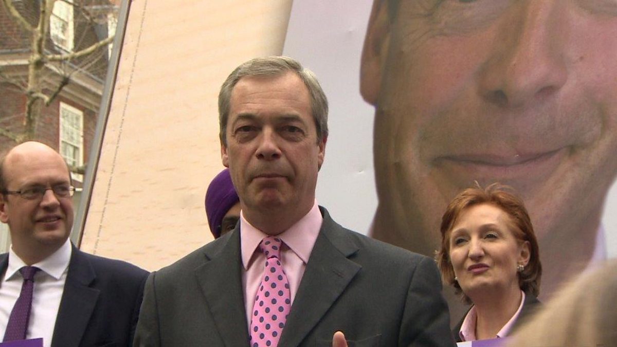 Recorded coverage of UKIP leader Nigel Farage launching the party's election pledge, from Monday 30 March.