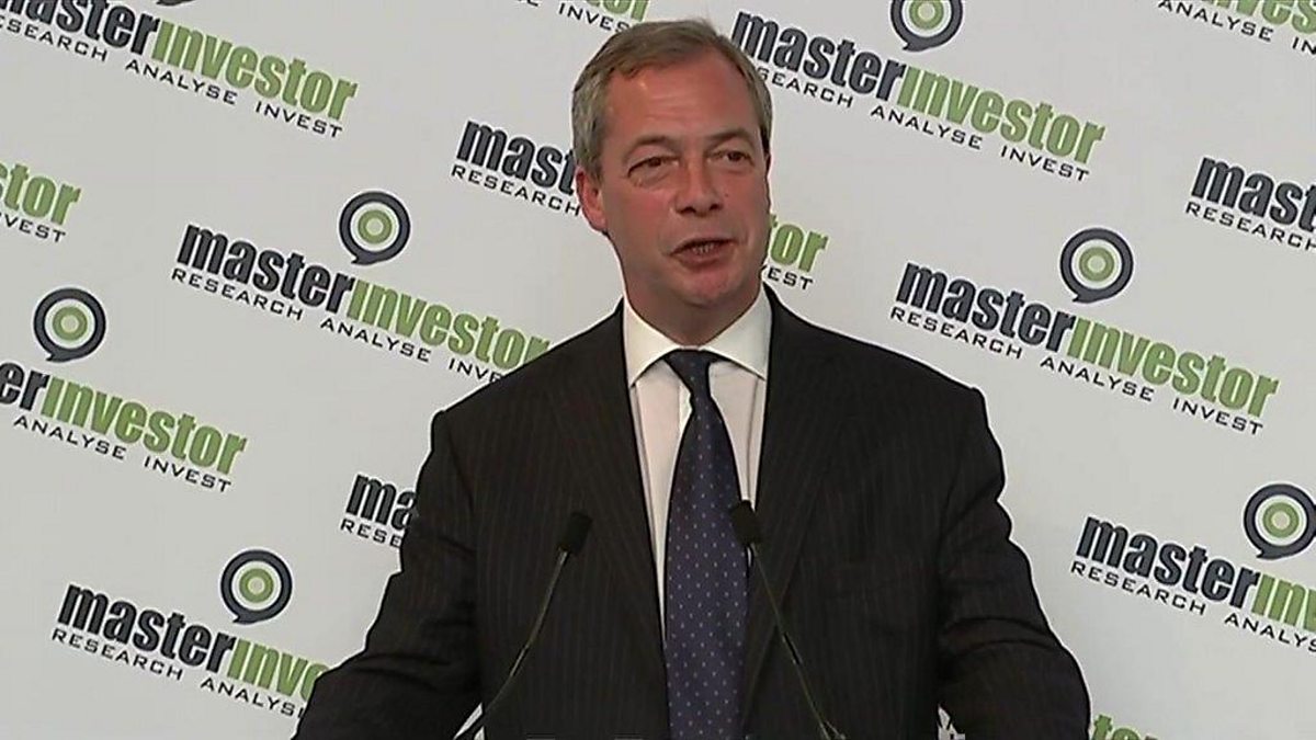 Recorded coverage of UKIP leader Nigel Farage giving a speech on government and private investment, from Saturday 25 April.