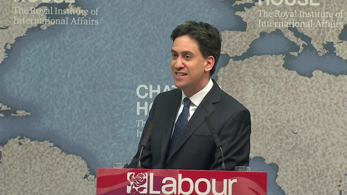 Recorded coverage of Labour leader Ed Miliband making a speech in London on foreign policy, from Friday 24 April.
