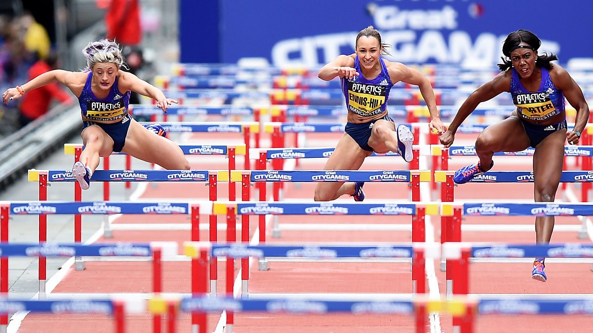 Reigning Olympic heptathlon champion Jessica Ennis-Hill makes her eagerly-awaited competitive return on the streets of Manchester, following the birth of her first child last year. She lines up in the 100m hurdles alongside fellow Brit Tiffany Porter, as the city once again plays host to the annual Great CityGames on a purpose-built athletics arena.