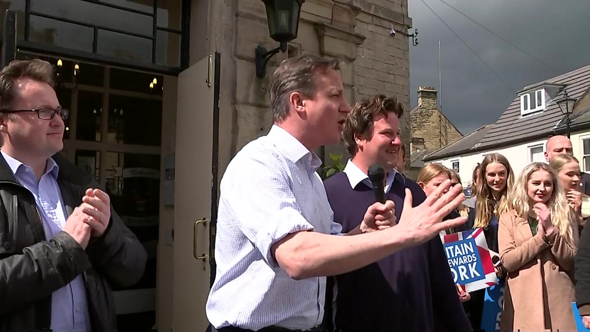 Recorded coverage of a speech by Conservative leader David Cameron in Wetherby, from Thursday 30 April.