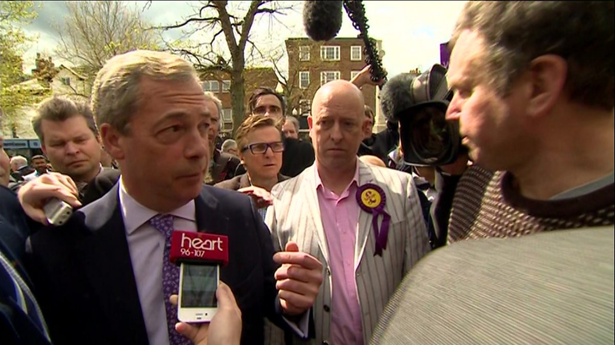 Recorded coverage of UKIP leader Nigel Farage taking questions during a visit to Aylesbury, from Thursday 30 April.