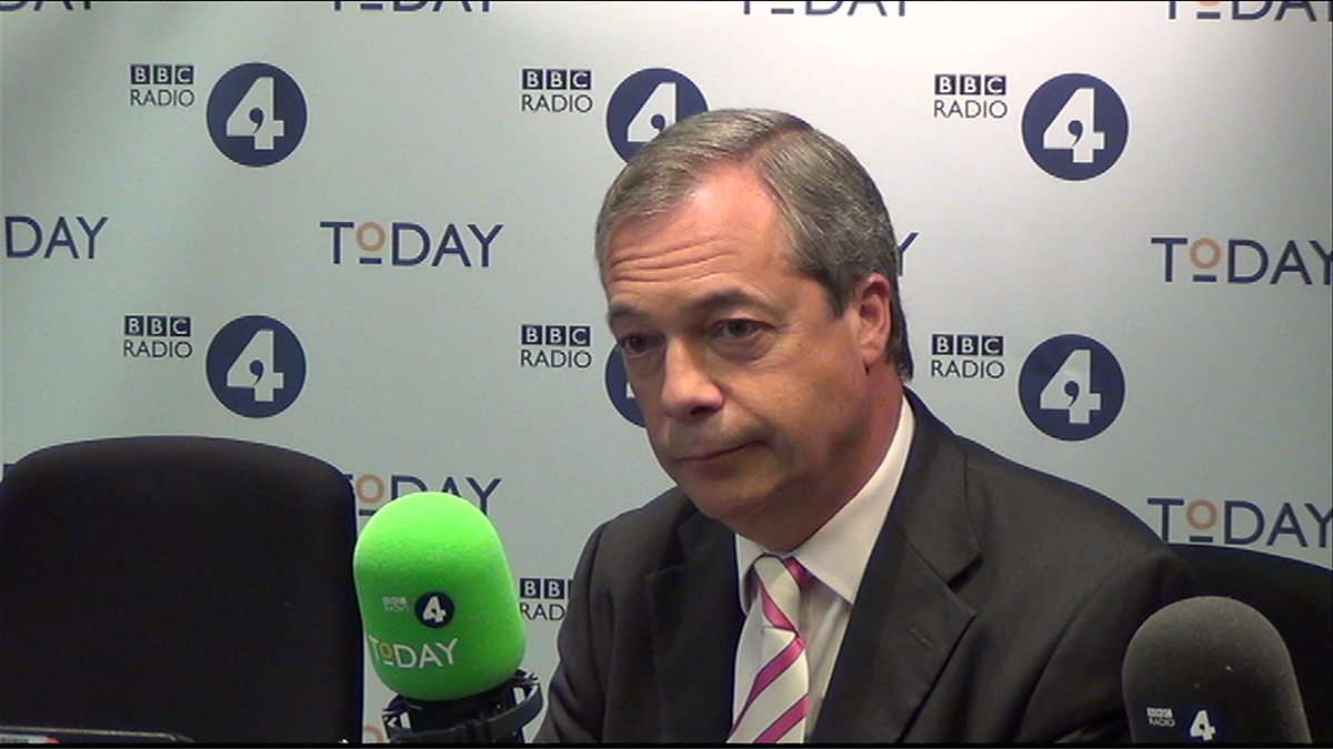 Recorded coverage of an interview with UKIP leader Nigel Farage, on the Today programme, from Friday 1 May.