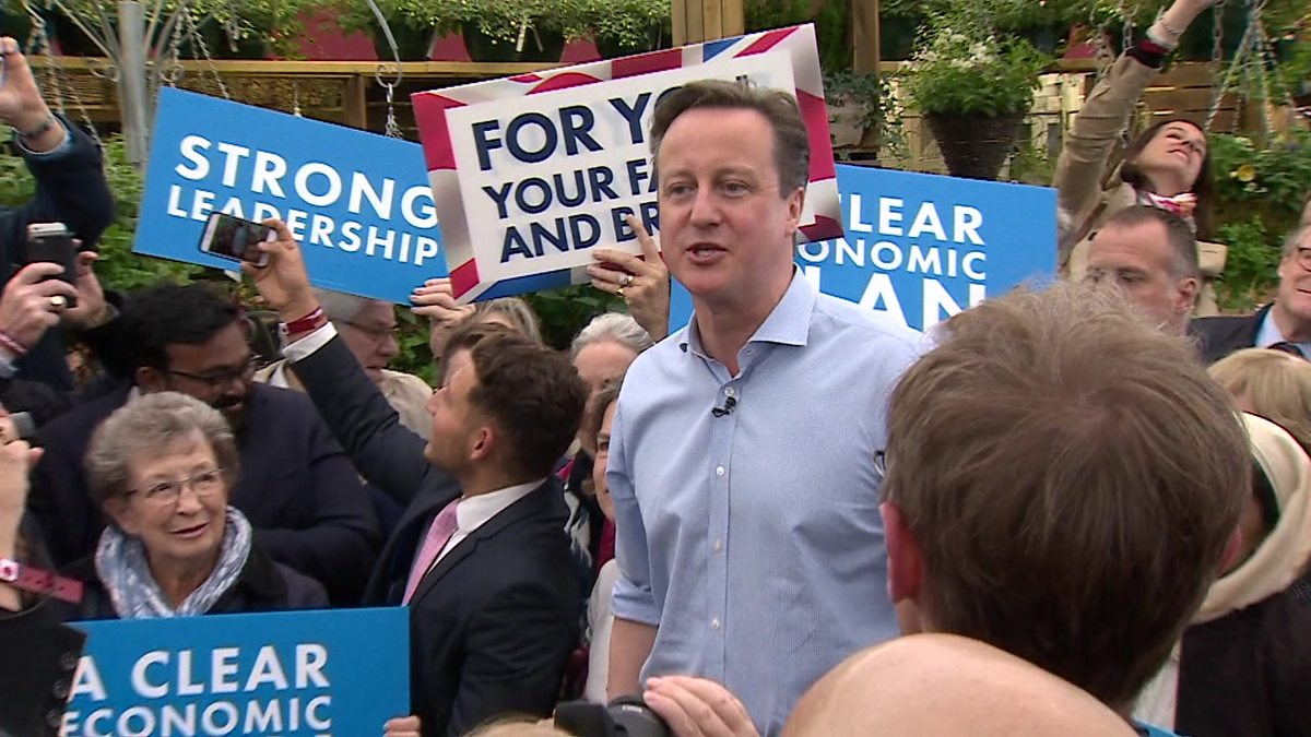 Recorded coverage of a Conservative campaign event with party leader David Cameron in south west London, from Tuesday 5 May.