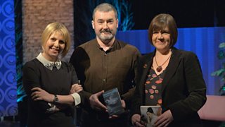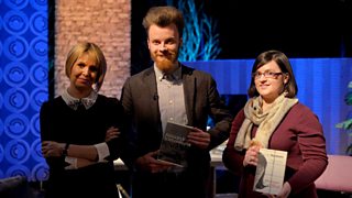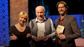 Anna Nicleòid a' còmhradh ri dithis aoighean mu na leabhraichean as fheàrr leotha.