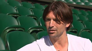 Sue Barker introduces highlights from the 2001 men's Wimbledon final.