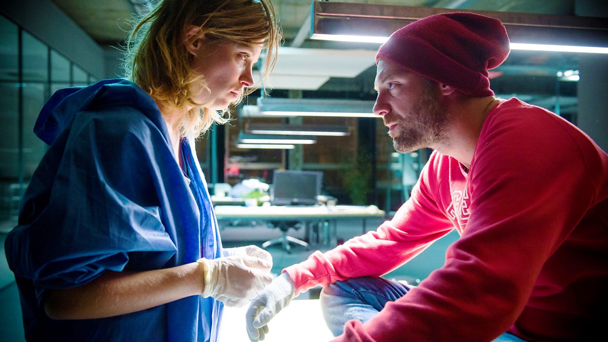 Belgian thriller. After the brutal raid on the lab, Jana is desperate to get away and finally agrees with Sam to attempt the escape route being controlled by the black-marketeers.