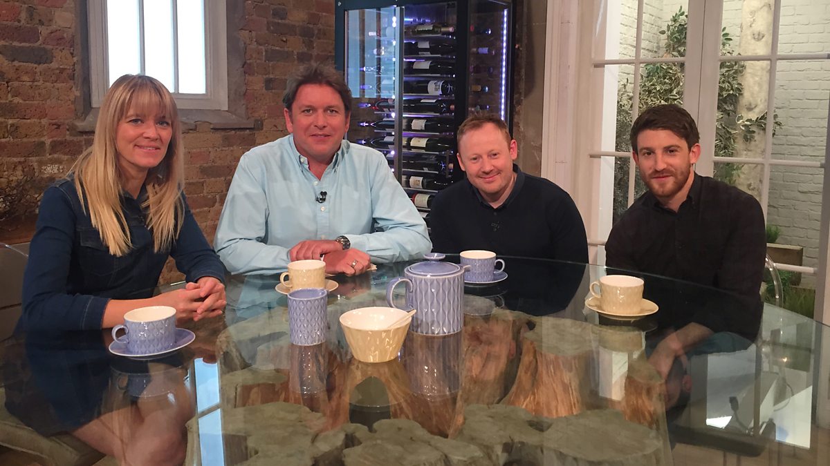 James Martin presents the weekly live cookery show with help from top chefs Lee Westcott and Kenny Atkinson. Wine expert Olly Smith chooses wine to match the dishes in the studio.