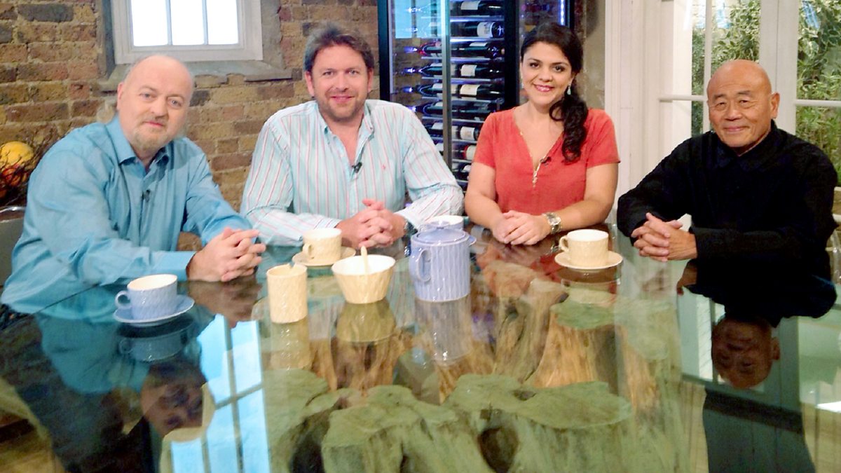 James Martin presents the weekly live cookery programme with help from top chefs Sabrina Ghayour and Ken Hom.