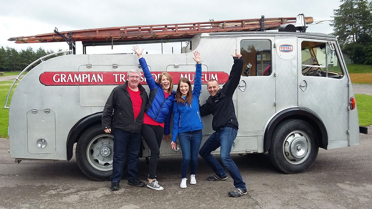 And without satnav or mobile phones to assist them, both teams get hopelessly lost in Railidh na Trealaich. They're trying to get to Grampian Transport Museum in Alford, where a vintage vehicle is waiting for them on the track.