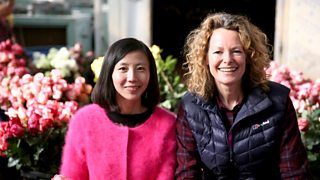 2/3Kate Humble takes part in a flower auction as lucky red roses are sold for New Year.
