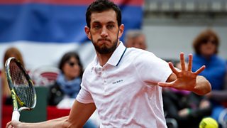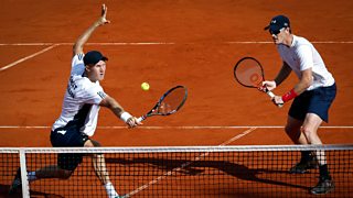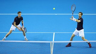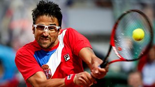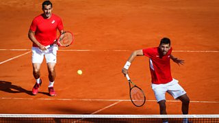 Live coverage of Krajinovic and Zimonjic v Inglot and J Murray in the doubles match.
