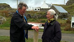 With Donald MacDonald, she visits the beautiful village of Manish. Donald has fond memories of growing up there but explains to Heather why in 1937 his family, along with many others, took the decision to move to the more fertile west side of the island.
