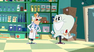 Blake must help Bjorn by taking his place as the dental superhero, Mgr Fiaclach.