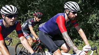 Coverage of the RideLondon-Surrey 100, where amateur riders take on a 100-mile course.
