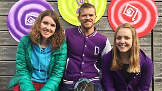 Tha Derek, Kim agus Annabel aig a' Mhòd. Derek, Kim and Annabel visit this year's Mod.