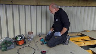 Aig Colaiste Chaisteil Leòdhais, tha Donnie a’ togail barbecue