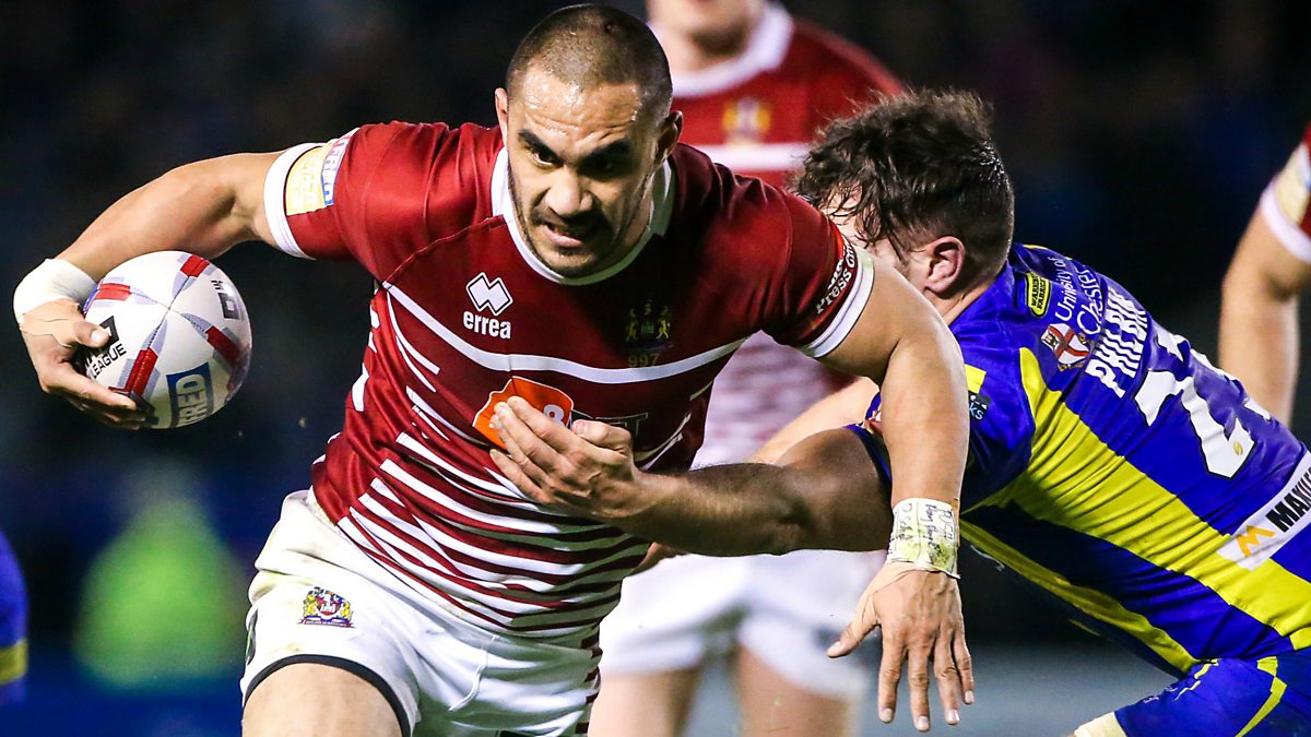 Highlights from the Super League as Warrington take on Wigan in a repeat of last year's grand final. Wigan claimed the Super League title with victory by 12 points to six in that match and both teams are amongst the favourites to return to Old Trafford this year. The two other semi-finalists from last season, Hull FC and St Helens, meet at the Kcom Stadium, Leeds play Catalans and Wakefield take on Salford. Castleford look to maintain their great start to the season when they travel to Widnes, and newly promoted Leigh take on Huddersfield.