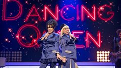 Helen Lederer and Harriet Thorpe perform Abba's 'Dancing Queen'