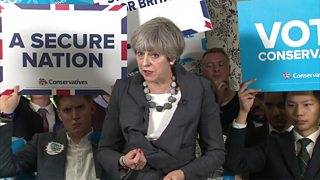 Recorded coverage of Theresa May on a campaign visit in Nottinghamshire, from 7 June.